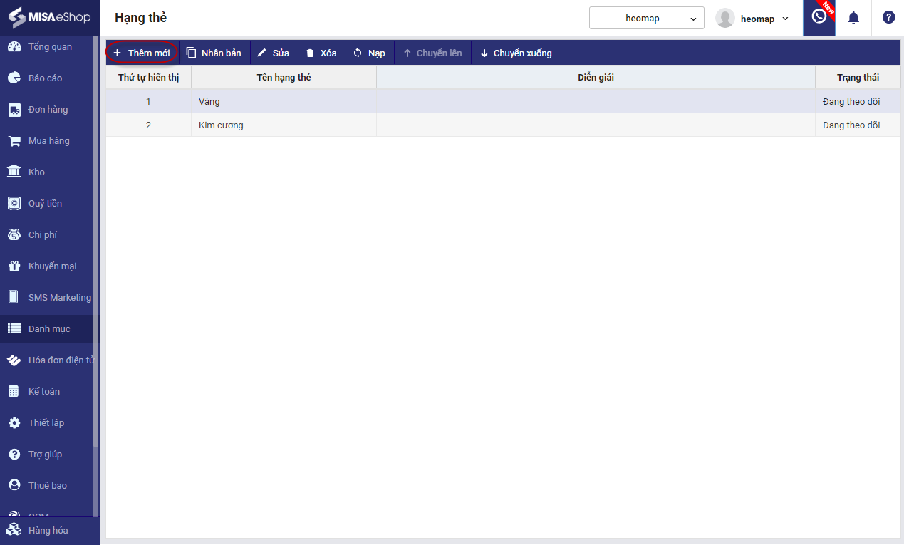 1. Chọn Danh mục\Hạng thẻ.