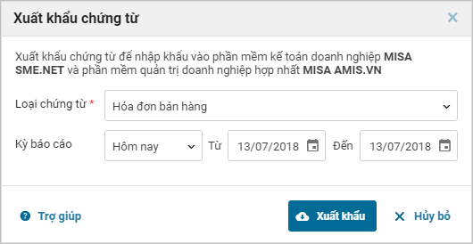 Giúp quản lý cửa hàng/kế toán xuất khẩu dữ liệu bán hàng để nhập khẩu vào phần mềm SME.NET, AMIS.VN