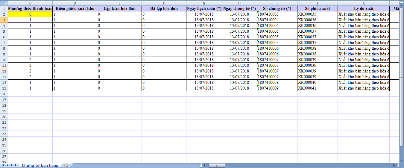 1. Sửa lại phương thức thanh toán trên file nhập khẩu